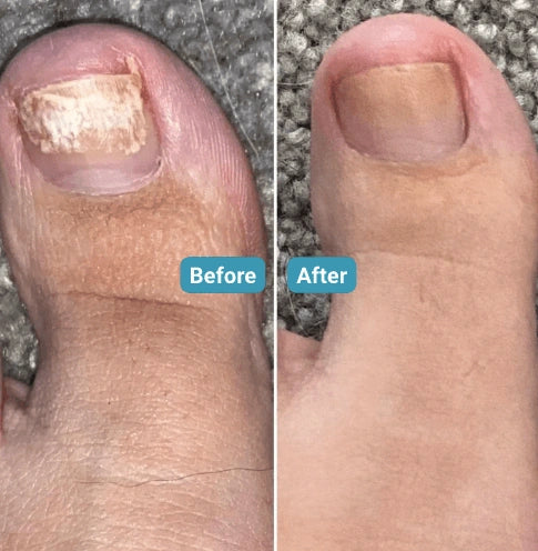 Most people notice improvements in nail color and texture in 2-4 weeks! Full results may take longer depending on nail growth, but many see progress fast enough to feel more confident with their feet.